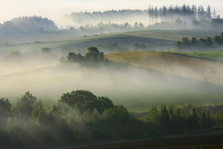 思いつつ丘に登ると、いい具合に霧が掛かってました。