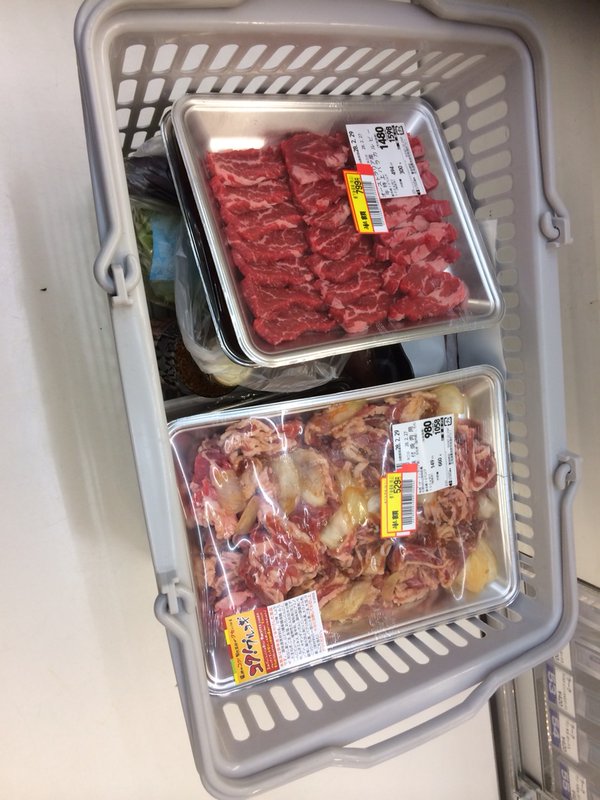 ポートレート撮影後に買い出しに行き、大量に肉を購入です。