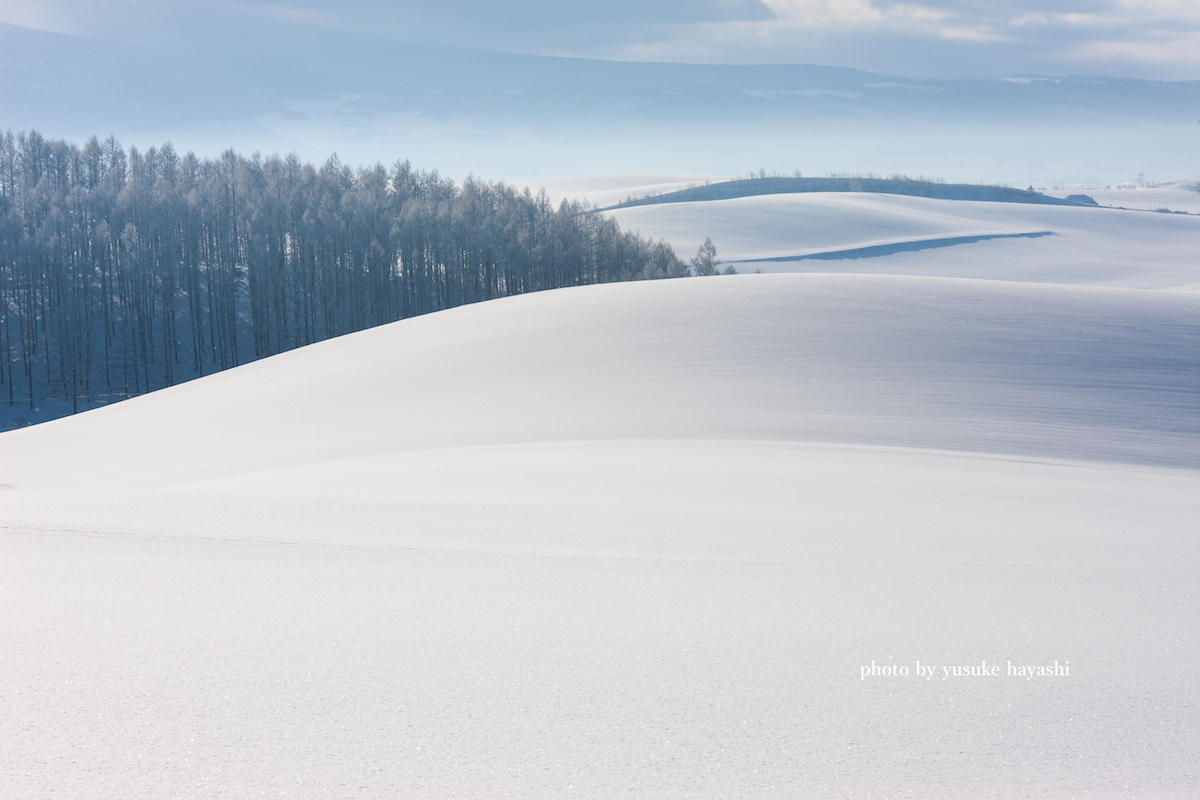真っ白の丘に陰影が少し付くだけでそれは絵になる。