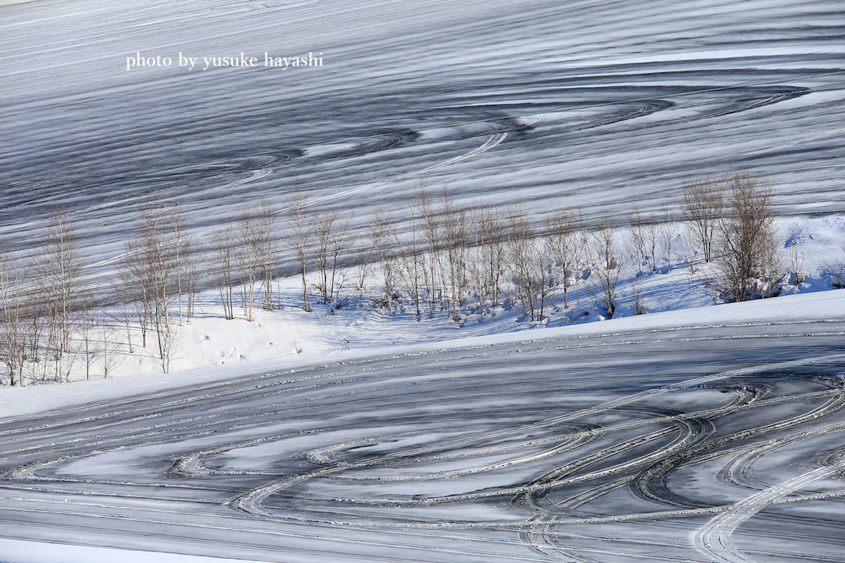 3月ごろの美瑛の丘、1月2月が厳冬期シーズンなのですが、意外と3月も面白い写真が撮れるので好きな月です。(写真は融雪剤の模様です)