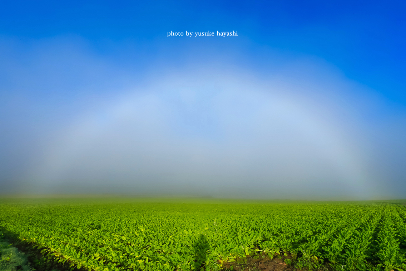 今日の朝は逆に丘が真っ白に覆われるほどで、ヘッドライトをつけても前がほとんど見えない状態でしたが、探し求めていた白虹に久しぶりに出会えました。