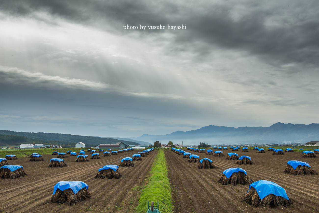 秋になると豆を干すためにブルーのシートを被せて干してある光景をたまに目にする事が出来ます。