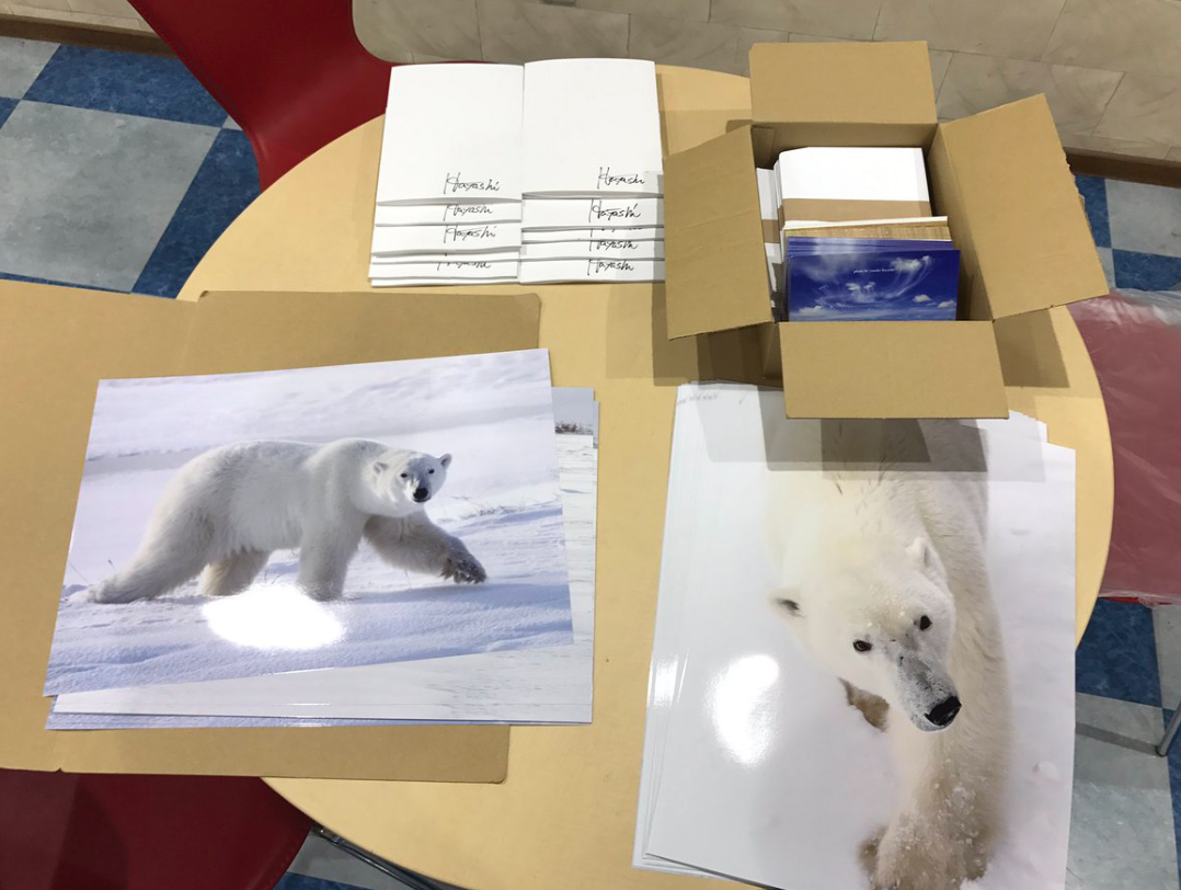 カレンダーの発送も一通り終わり、次はポーラーベアの撮影の支援者の方々にお礼の品を返すために検品作業です。